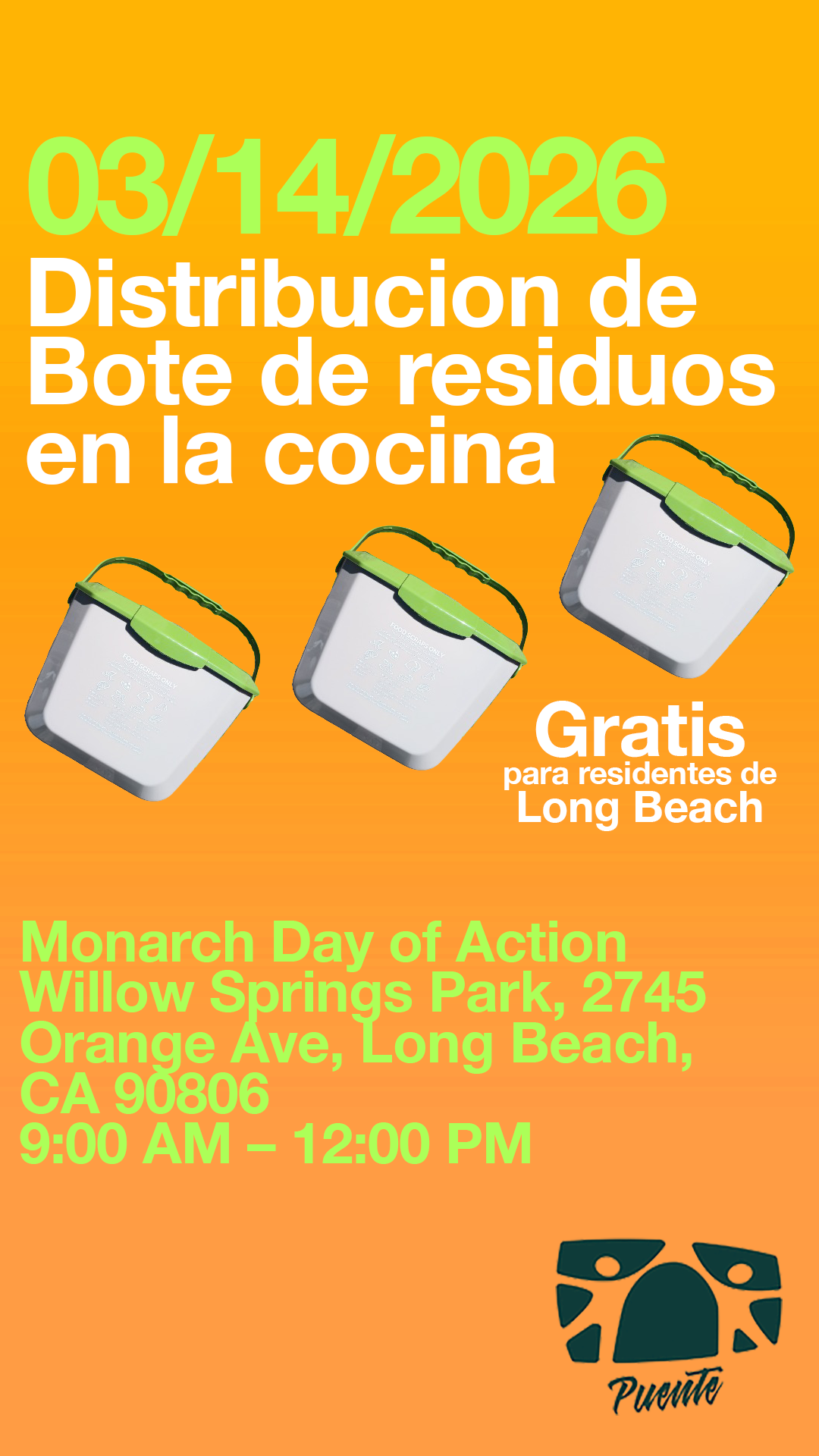 Back to All Events Distribucion de bote de residuos en la cosina Saturday, March 14, 2026 9:00 AM 12:00 PM Google Calendar ICS